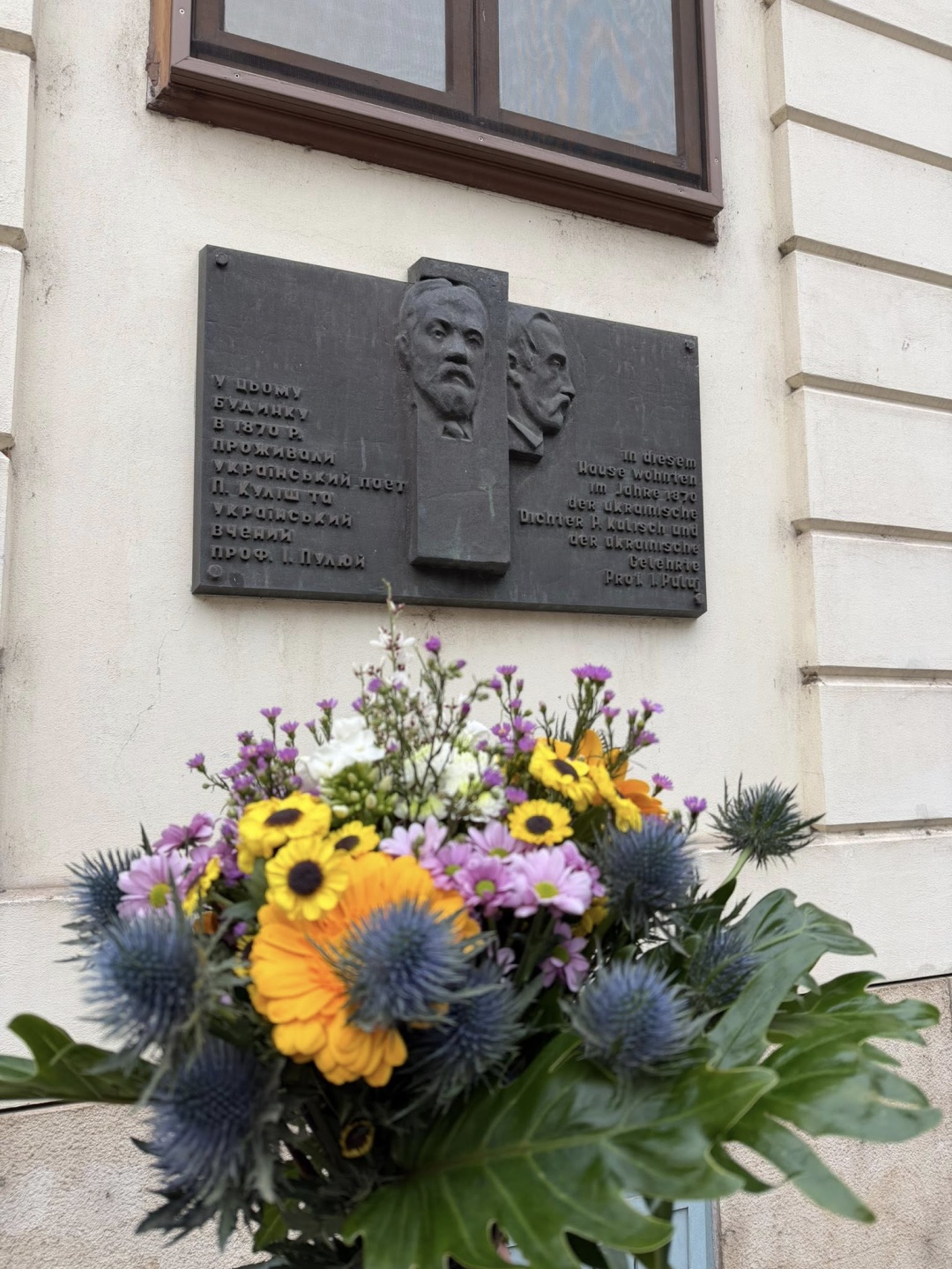 Дипломати та представники української громади поклали квіти до меморіальної дошки, встановленої на будинку, де у 1870 році мешкали Іван Пулюй і Пантелеймон Куліш. Саме за цією адресою видатні діячі разом працювали над першим повним перекладом Святого Письма українською мовою.