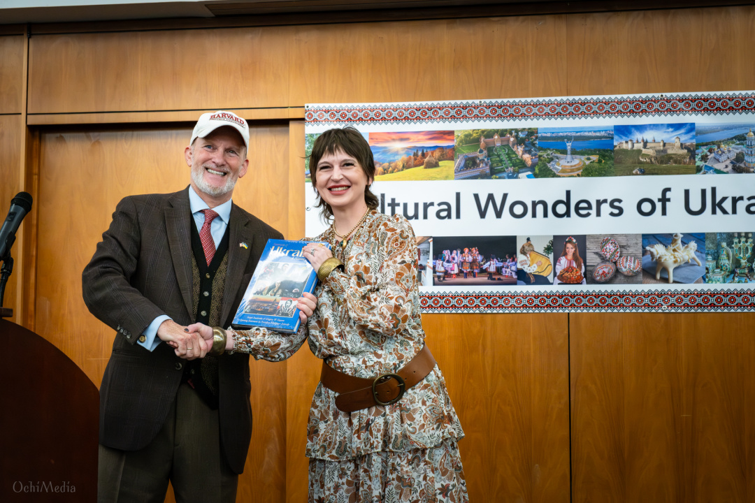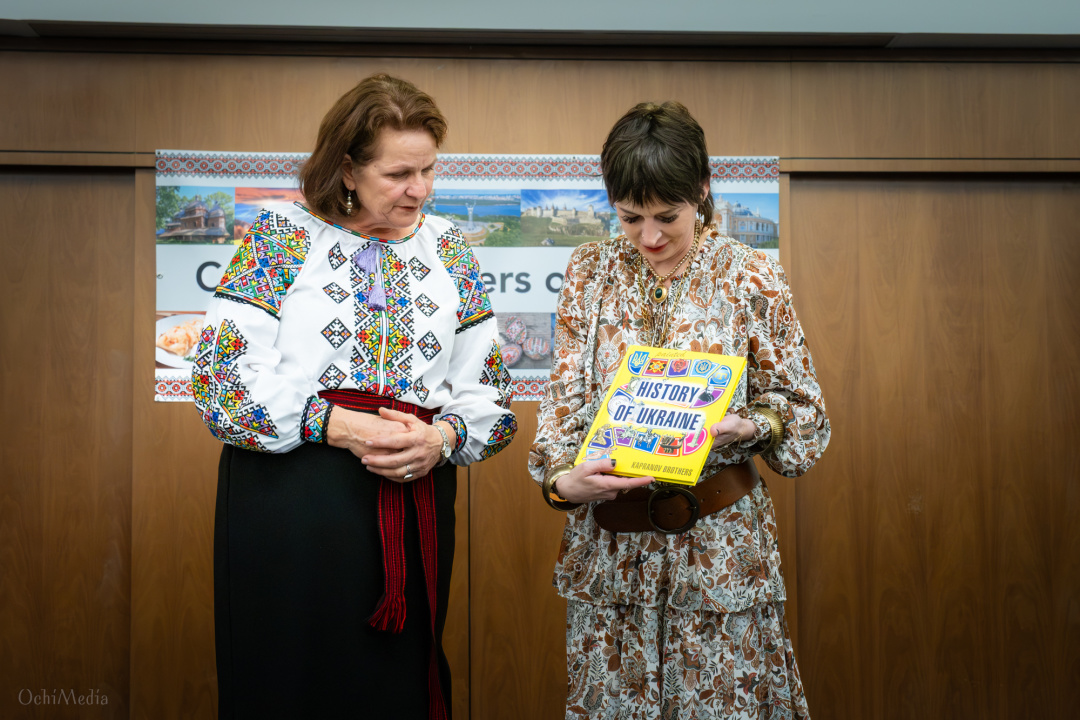 У межах відкриття відбулися знакові передачі книг до фондів бібліотеки: Посол Слейтон подарував два примірники власного видання Portraits of Ukraine, а Христя Ґеремеш передала книгу «Мальована історія України» братів Капранових.