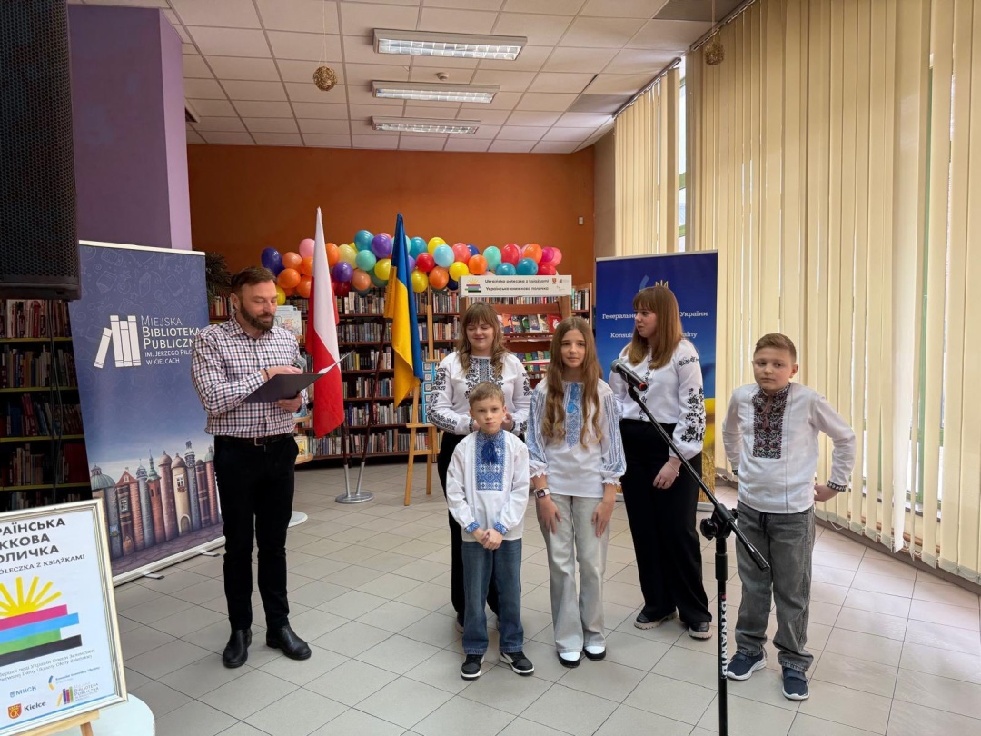 На «Українській книжковій поличці» в місті Кєльце представлено ретельно підібрану колекцію української художньої та науково-популярної літератури для дітей і дорослих — як українською мовою, так і в перекладах польською. Особливий акцент зроблено на виданнях, що висвітлюють боротьбу українського народу проти агресора, утверджують національну ідентичність, популяризують історико-культурну спадщину та демонструють здобутки сучасного українського мистецтва. Крім того, українські дипломати розмістили на поличці збірку аудіокниг української класичної літератури, доступних для безоплатного прослуховування.