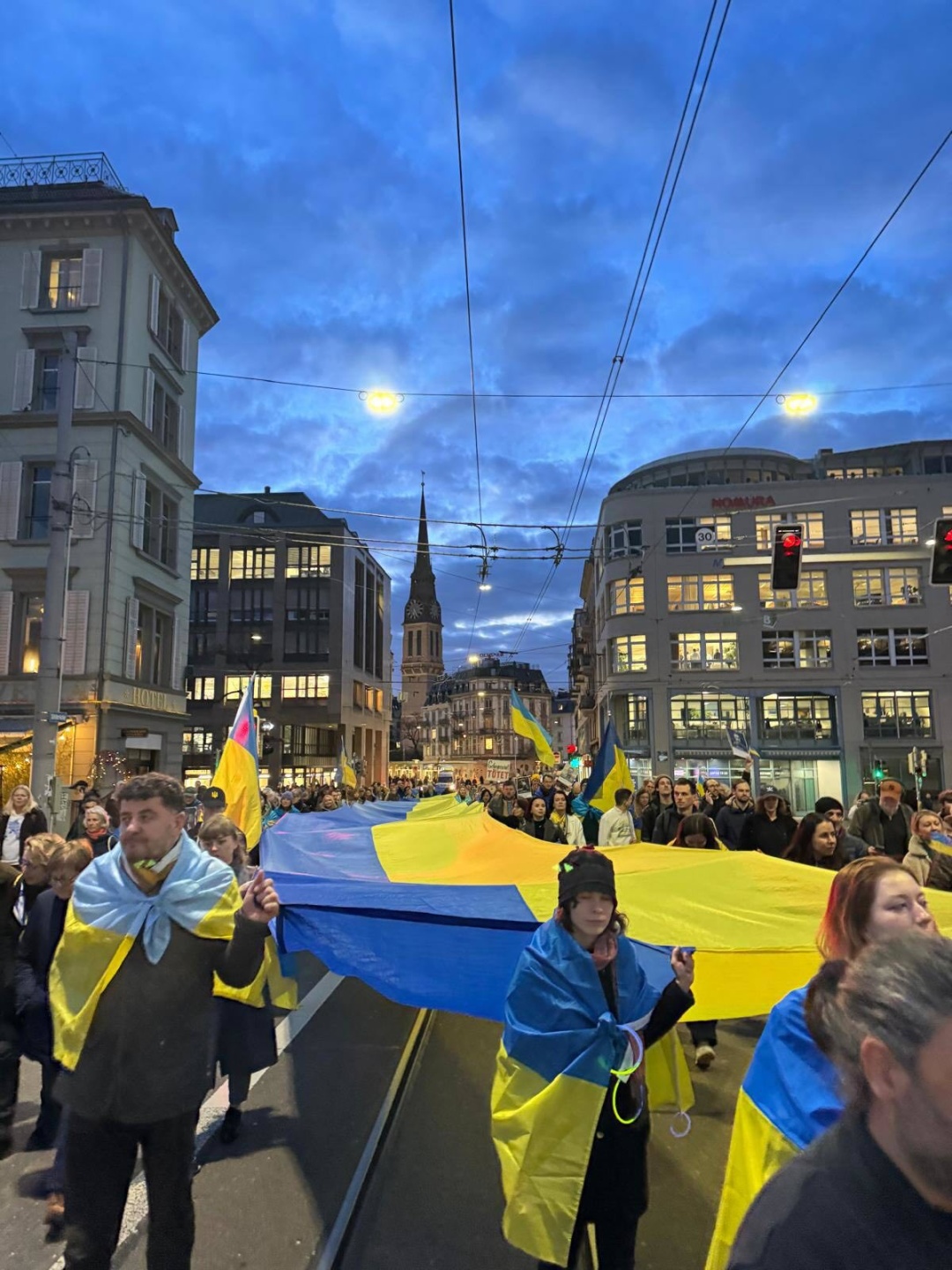 Хода розпочалася на Helvetiaplatz і завершилася мітингом на Bürkliplatz. Під час виступів спікери акцентували на найбільш критичних наслідках війни: систематичних воєнних злочинах окупантів, незаконній депортації українських дітей, масштабній гуманітарній та екологічній катастрофах, безпекових ризиках, які російська агресія створює для всієї Європи.