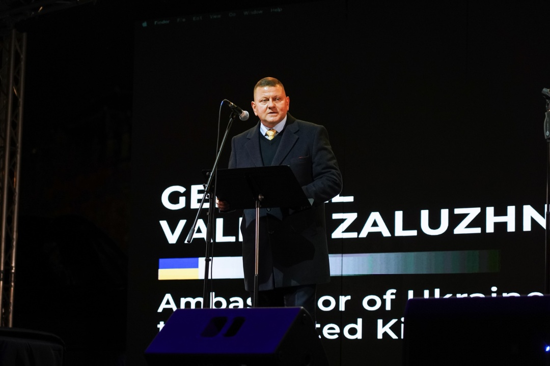 Ключовою подією вечора став виступ посла України у Великій Британії, генерала Валерія Залужного. У своєму зверненні він наголосив на незворотності вибору, який українці зробили 24 лютого 2022 року.