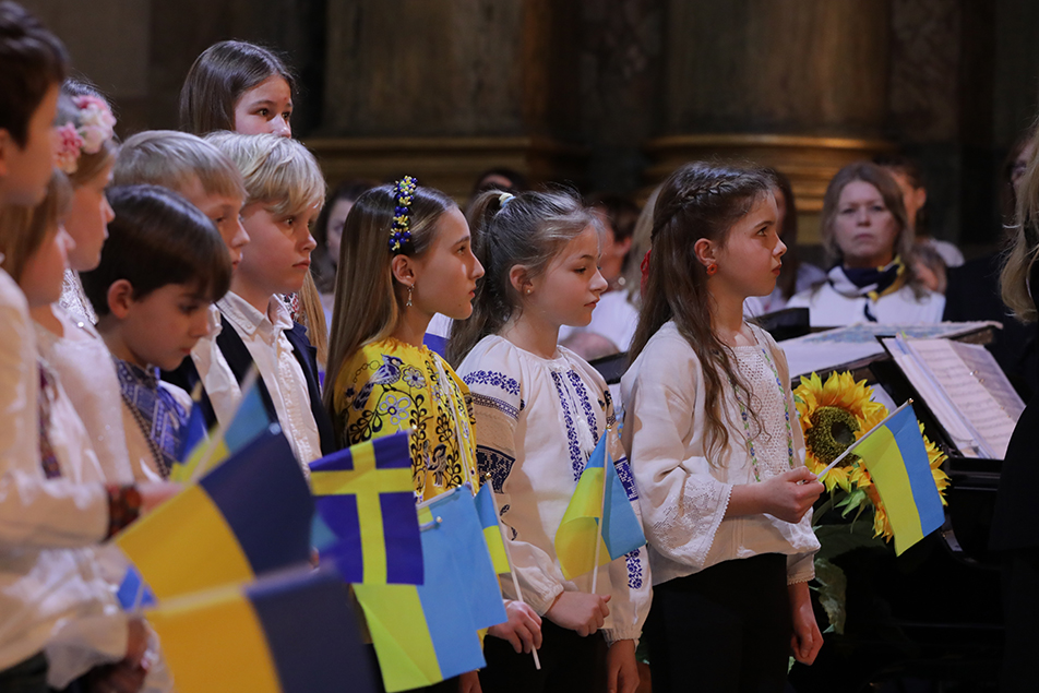 Разом із Королем та Королевою Сільвією у молитві за справедливий і тривалий мир взяли участь спікер Риксдагу, міністр закордонних справ Швеції Марія Мальмер Стенергард, кардинал Андеш Арбореліус, представники дипломатичного корпусу та численна українська громада.