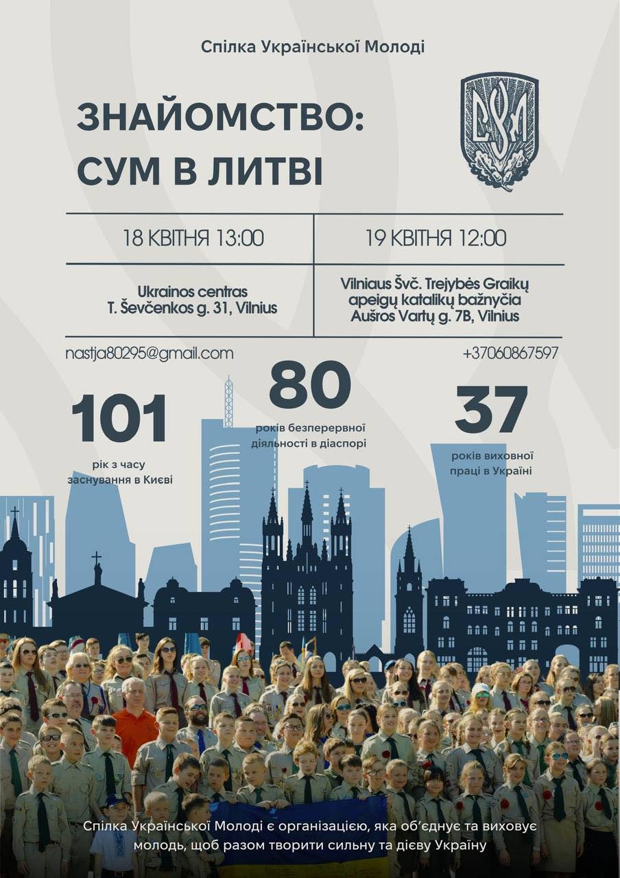 - 18 квітня (субота): зустріч в Українському центрі м. Вільнюс. Початок о 13:00