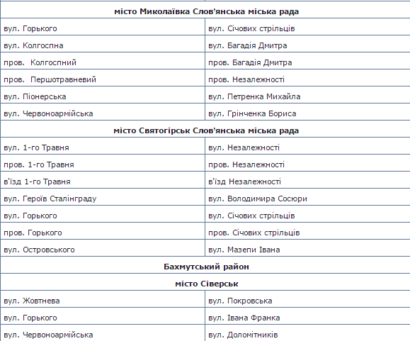 У Святогірську замість вул. 1-го Травня появилася вул. Незалежності,