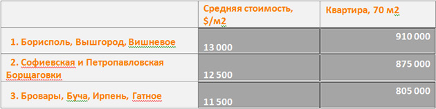 Якщо ви серйозно замислюєтеся про купівлі квартири недалеко від Києва, варто орієнтуватися на суму від $500 за квадратний метр. Таким чином, купівля двокімнатної квартири площею 70 квадратних метрів обійдеться вам всього у 35 тисяч доларів.