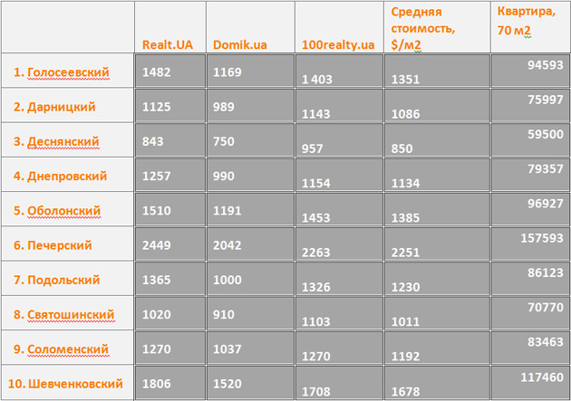 Статистика свідчить, що найдорожчий район - Печерськ, де квадратний метр житла коштує $2251. Це означає, що за умовну квартиру на 70 квадратних метрів доведеться викласти кругленьку суму - близько 157,5 тисяч доларів.