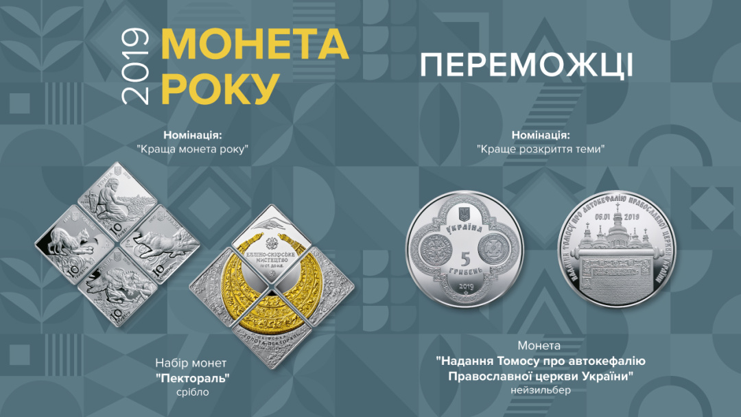 "У номінації “Краща монета року” перемогу присуджено набору із чотирьох пам’ятних монет “Пектораль” (срібло, номіналом кожної монети 10 гривень). Автори ескізів цих монет-переможниць – художниця Наталія Фандікова. Скульптори – Анатолій Демяненко та Володимир Дем’яненко. Програмне моделювання здійснив Віталій Андріянов", - йдеться в повідомленні.