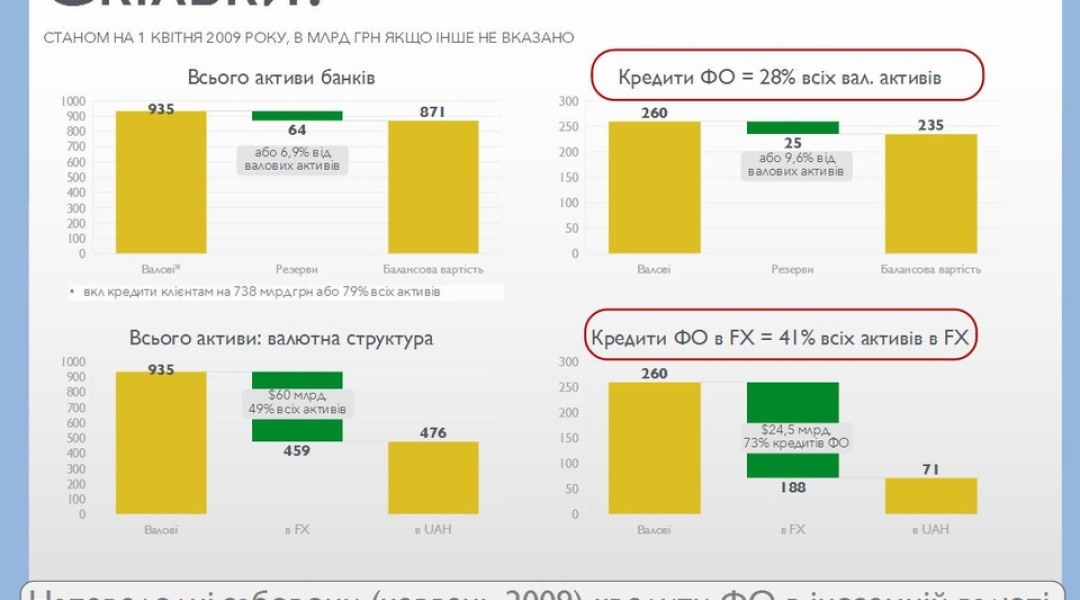 Експерти кажуть про спільну відповідальність банків, НБУ та позичальників за ситуацію, що склалася. Беручи кредити у валюті в період пікової вартості нерухомості, люди переоцінювали власні фінансові можливості та недооцінювали ймовірні ризики. Натомість банки в гонитві за клієнтами не інформували належним чином про ймовірність таких ризиків. Більше того, активно рекламували іпотечні програми, іноді небезпечно послаблюючи вимоги до позичальників. Це був для них швидкий і легкий спосіб заробітку. А регулятор заплющував на те все очі і не впроваджував жодних логічних за таких обставин обмежень. Якби так сталося, проблема валютної іпотеки не була б для України настільки гострою. Хоча повністю уникнути її, певно, і не вдалося б. І визначальним тут справді був фактор попередніх фінансових криз.