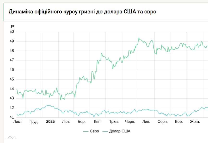 у monobank: 41,80 - 42,19 грн/$ та 48,33 - 49,00 грн/EUR.