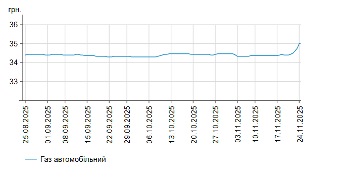 Зокрема, зафіксовано такі середні ціни на пальне: бензин марки А-95 (преміум) - 63,27 грн/л (здорожчав на 72 коп.); бензин марки А-95 - 58,53 грн/л (здорожчав на 2 коп.); бензин марки А-92 - 56,76 грн/л; дизельне пальне - 58,46 грн/л (здорожчало на 5 коп.). Середня ціна автогазу становить 34,99 грн/л - на 40 коп. більше, ніж у п'ятницю.