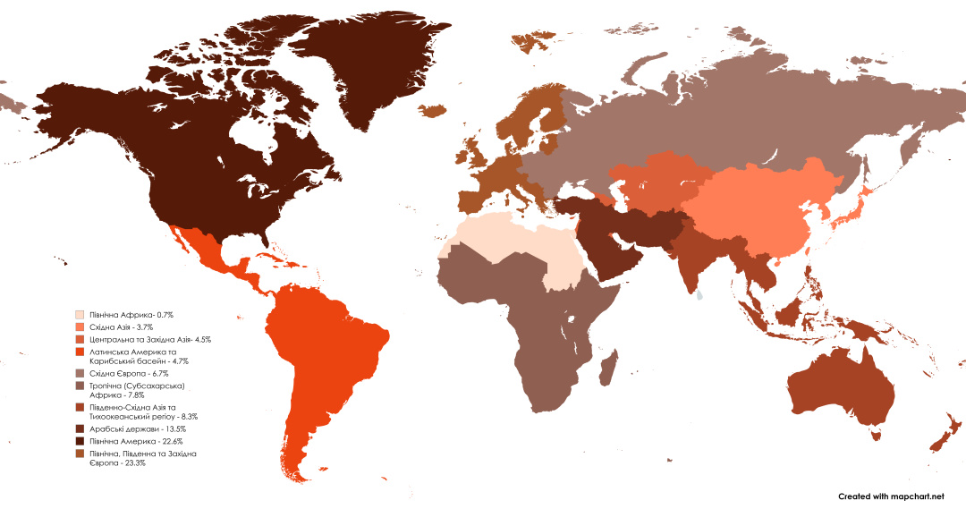 Рисунок 2. Регіональний розподіл трудових мігрантів у світі станом на 2022 рік