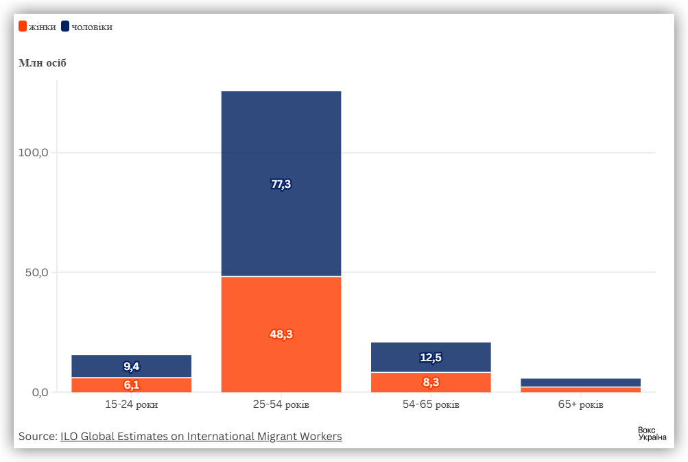 У світі з 167,7 млн трудових мігрантів на 2022 рік жінок 38,7%, а 61,3%, відповідно, чоловіки. Основним роботодавцем трудових мігрантів у 2022 році є сектор послуг, у якому працювало 68,4% усіх мігрантів. Ще 24,3% були зайняті в промисловості, а 7,4% – у сільському господарстві. Сфера послуг особливо приваблює жінок: майже 81% жінок-мігранток працюють саме тут, тоді як чоловіки частіше зайняті в промисловості або агросекторі.