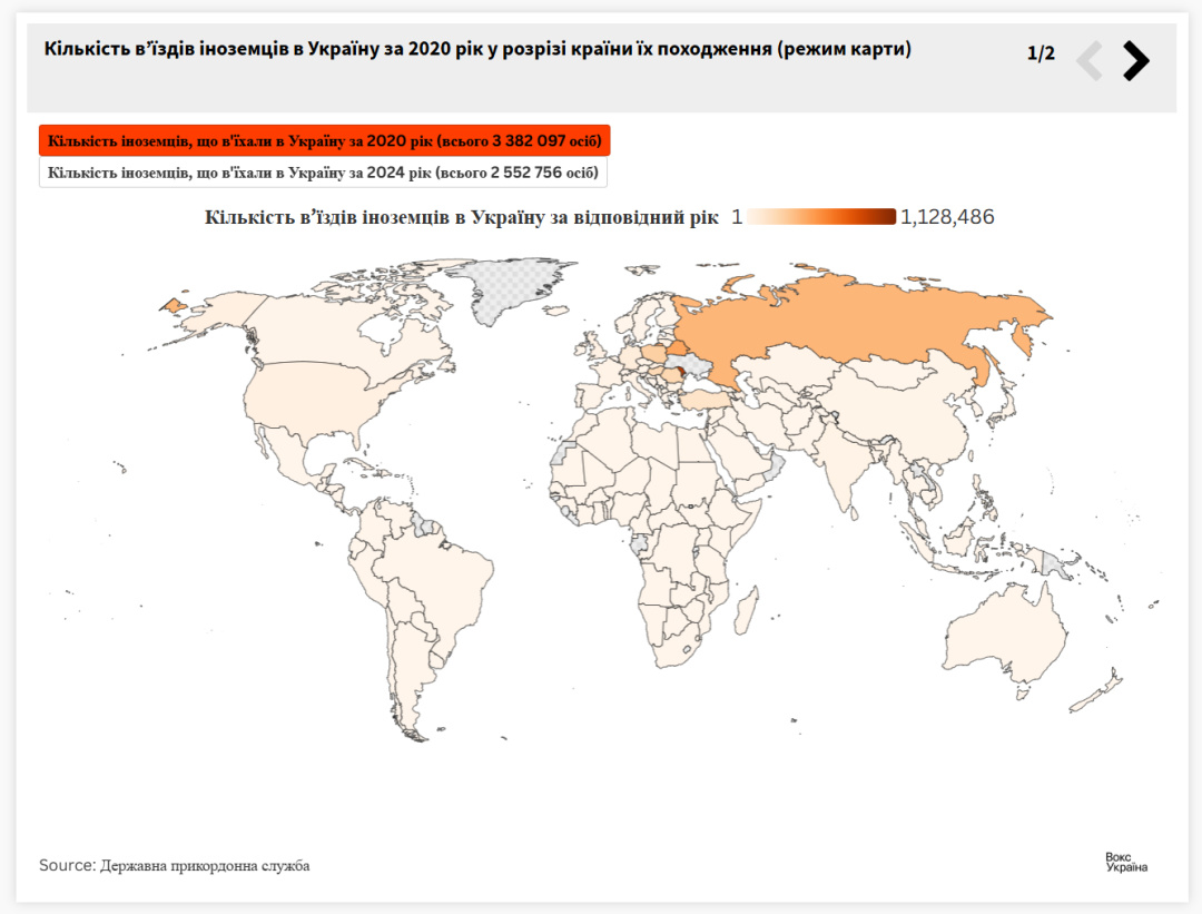 Рисунок 5. Кількість в’їздів іноземців в Україну за 2020 рік у розрізі країни їх походження