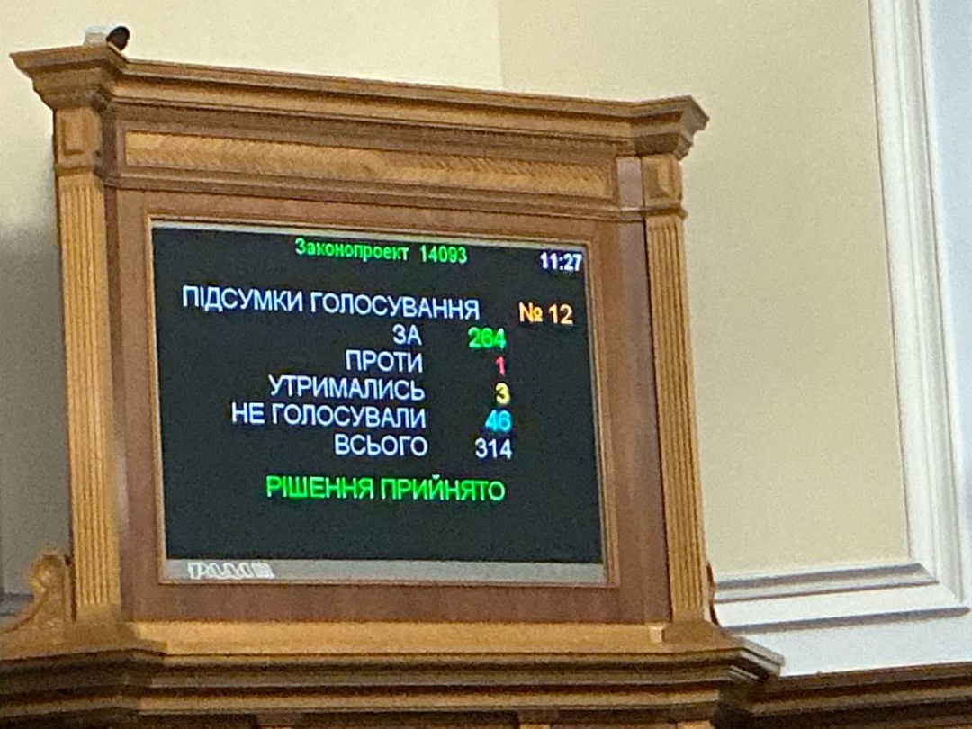 За інформацією Железняка, рішення було ухвалене 264 голосами народних обранців.