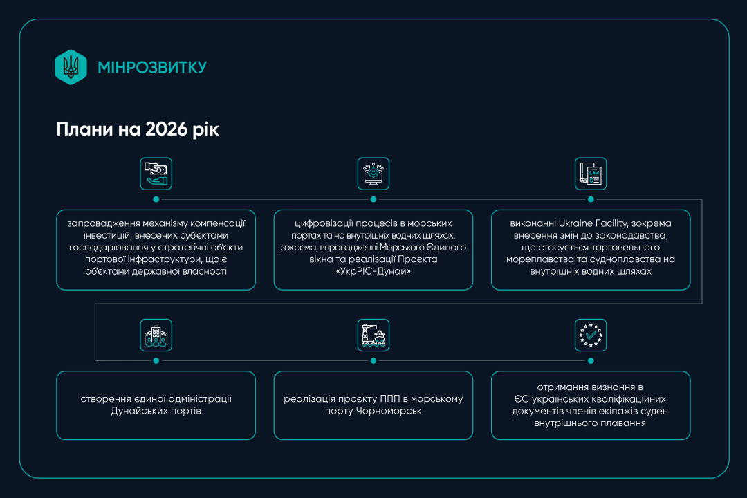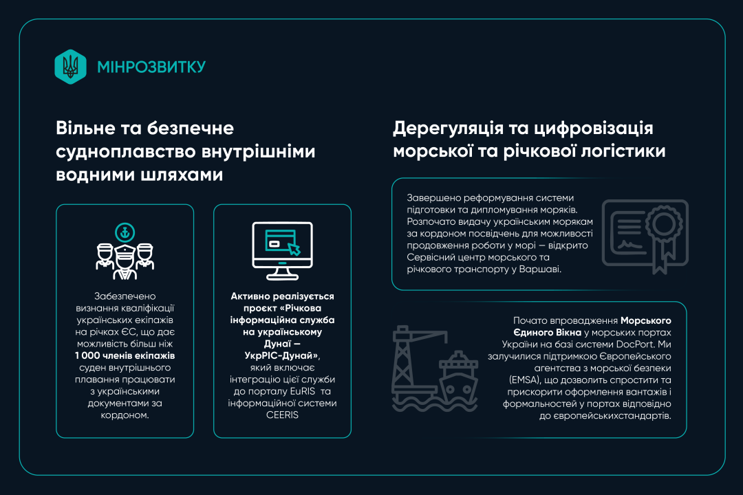 Окремо у міністерстві розповіли про роботу над стимулюванням розвитку Дунайського кластеру, який розглядається як довгостроковий хаб для внутрішніх і міжнародних перевезень.