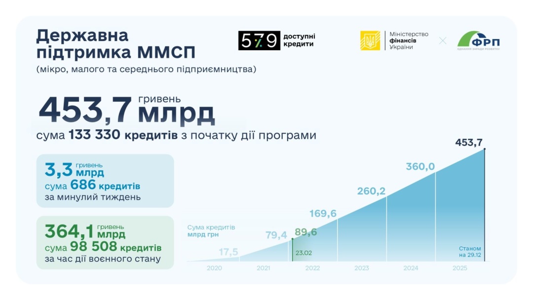 З початку 2025 року бізнес отримав 28 873 кредити на 87,7 млрд грн, з яких від банків державного сектору економіки – 20 477 кредит на 47,4 млрд грн.