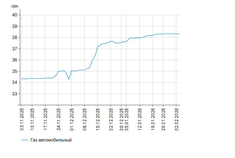 Як повідомлялось, у понеділок, 2 лютого, середня ціна на бензин марки А-95 зросла на 28 коп. до 60,65 грн/л, на дизельне пальне - на 33 коп. до 60,26 грн/л.