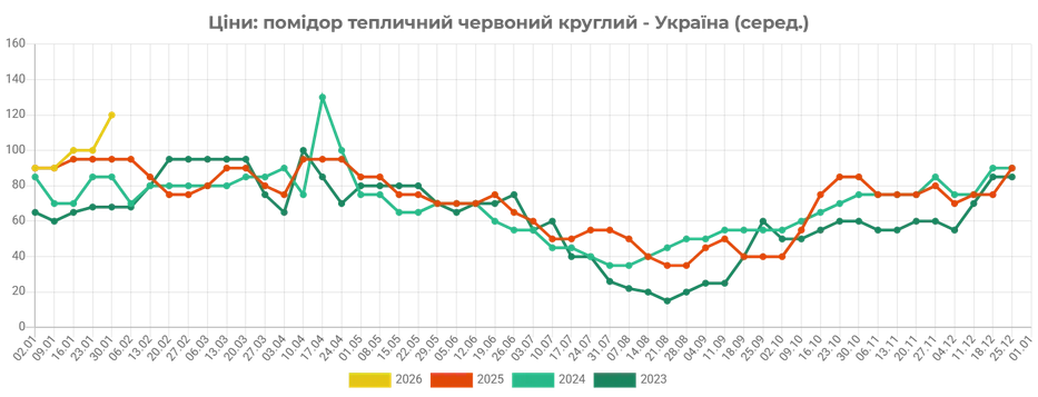 Зростання цін учасники ринку пов’язують із високою вартістю продукції в Туреччині, як основному постачальнику томатів у зимовий період, а також з обмеженою пропозицією на українському ринку.