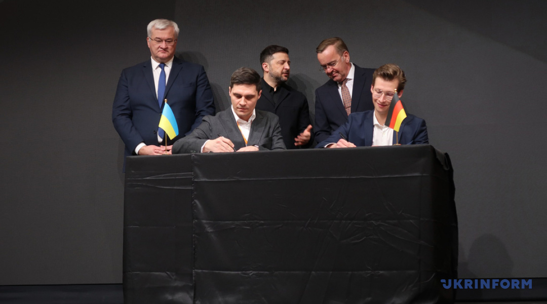 Підписання відбулося у присутності Президента Володимира Зеленського, який розпочав свій візит до Мюнхена із зустрічі з керівництвом і працівниками першого спільного українсько-німецького підприємства Quantum Frontline Industries, що виробляє дрони для ЗСУ.