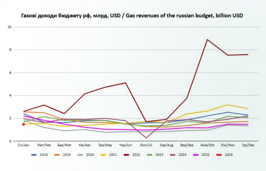 Як повідомлялося, у січні 2026 року доходи Росії від енергоносіїв знизилися вдвічі порівняно з тим самим періодом минулого року, і досягнули найнижчого рівня з липня 2020 року.