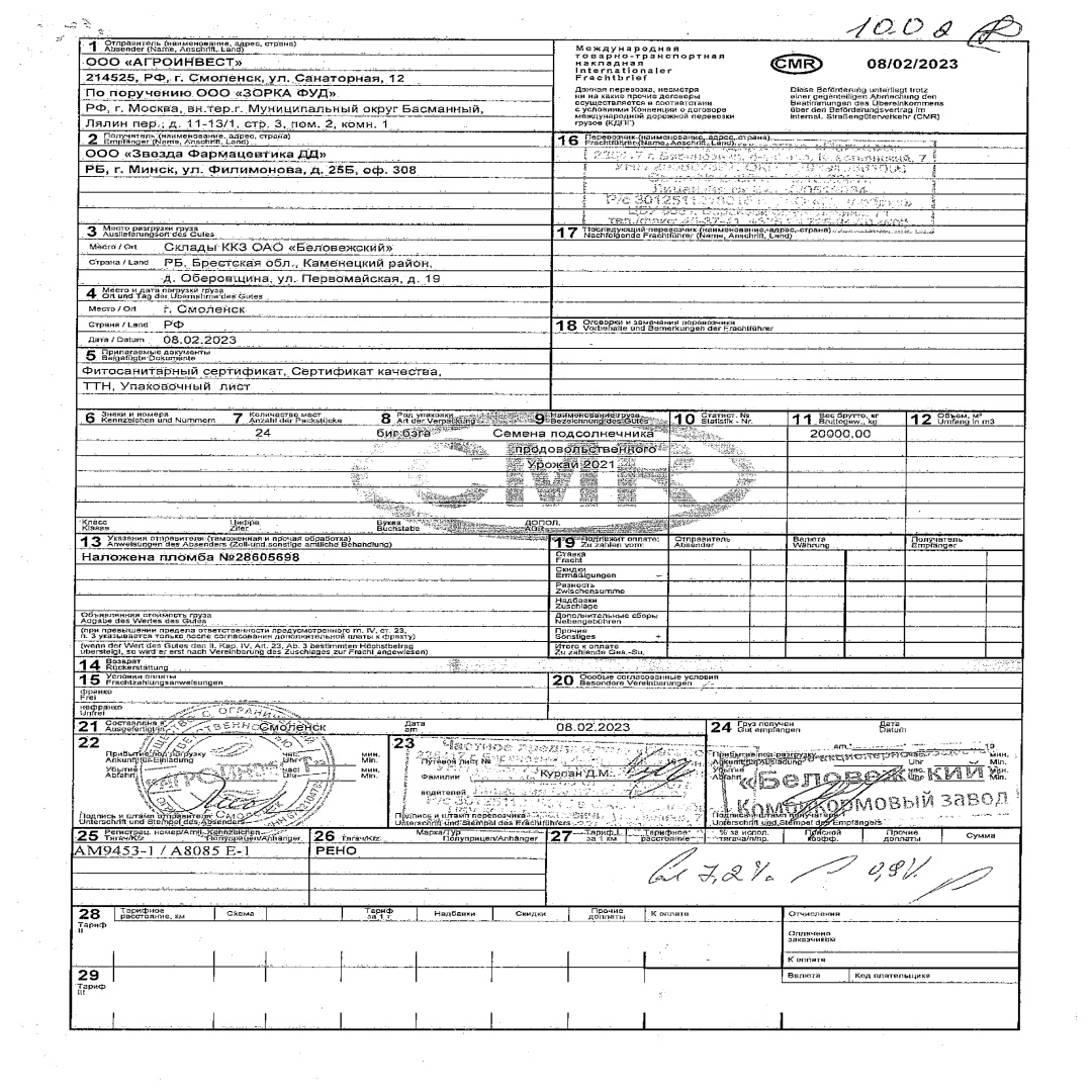 Згідно з протоколом досліджень Ростовського референтного центру Россільгоспнагляду, 26 травня 2023 року компанія передала на аналіз зразки насіння соняшнику з партії обсягом 1000 тонн, вирощеного в Джанкойському районі тимчасово окупованої АР Крим. Місце призначення – Республіка Білорусь.