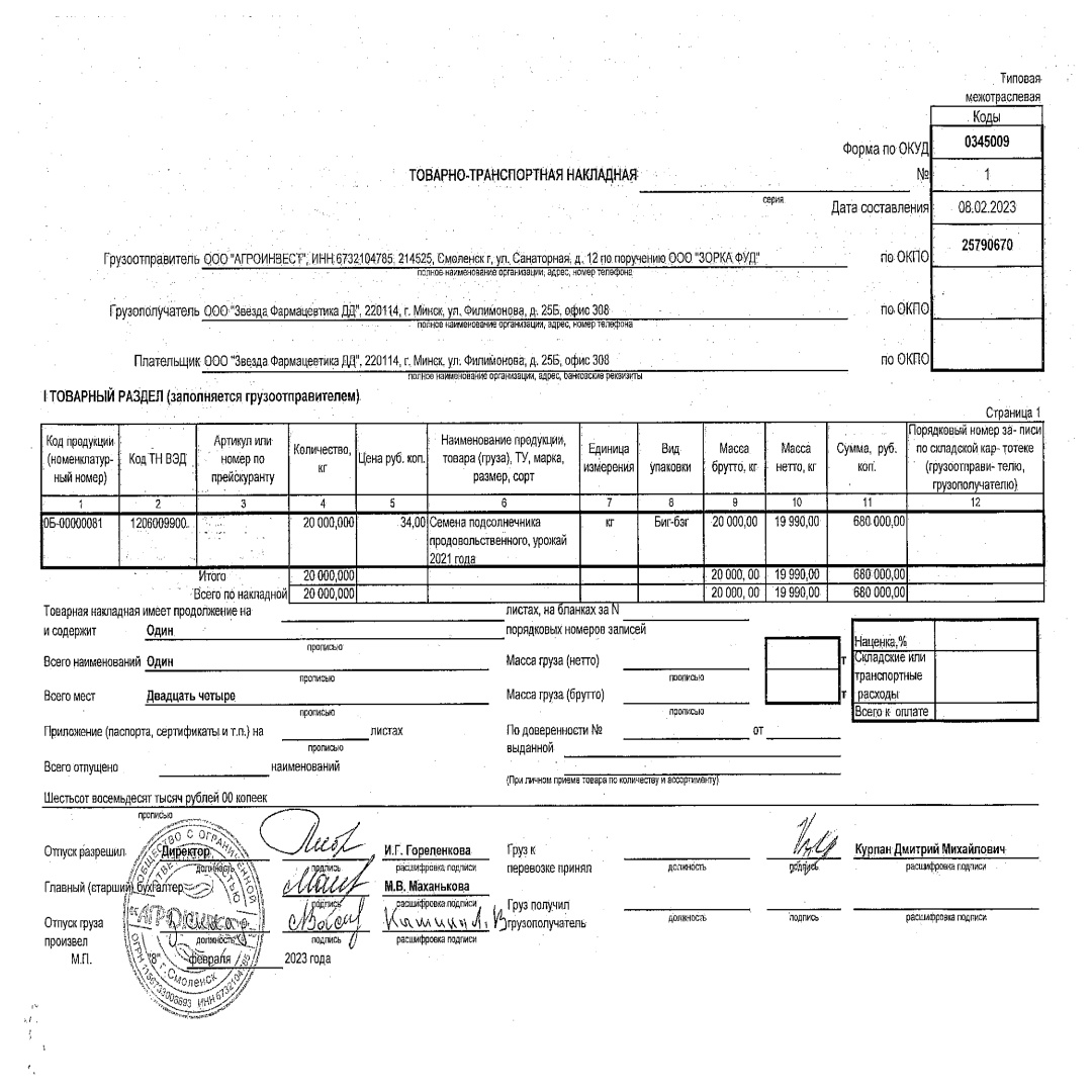 18 листопада 2022 року аналогічний договір під номером №0000000002 було укладено між «Аграрним Донбасом» та білоруським ТОВ «Звезда Фармацевтика ДД», пов’язаним із бенефеціарами вищеназваної «Зорка Фуд».