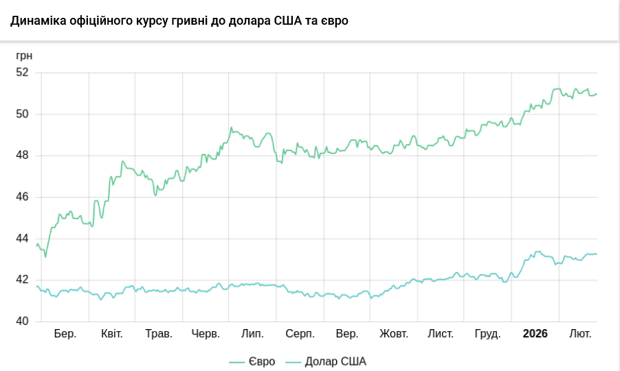 1 євро – 50,96 грн (51,00 грн станом на 24 лютого).