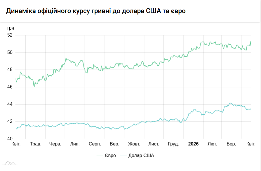 - 1 євро – 51,27 грн (51,32 грн станом на 15 квітня).