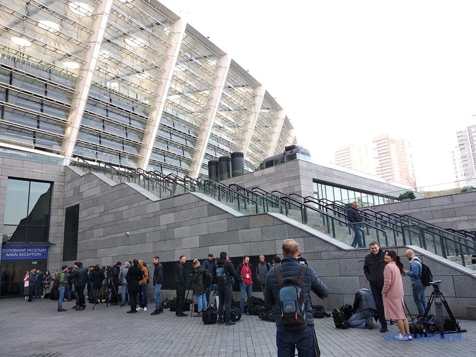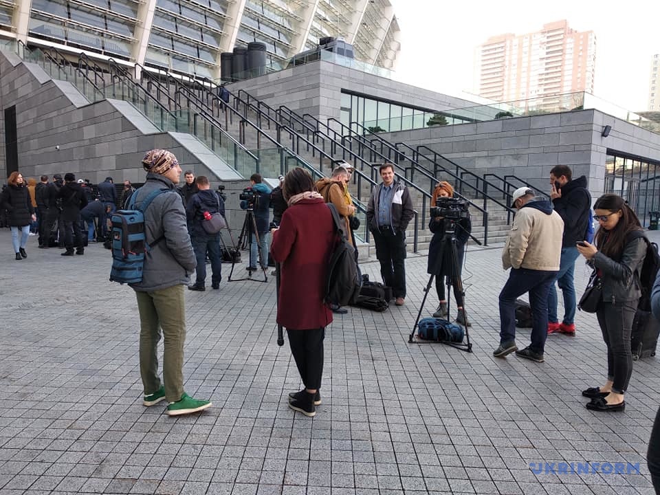 У приміщенні НСК перебувають близько 200 акредитованих журналістів. Представників ЗМІ почали пропускати з 8:00. У холі було встановлено три рамки з металошукачами.