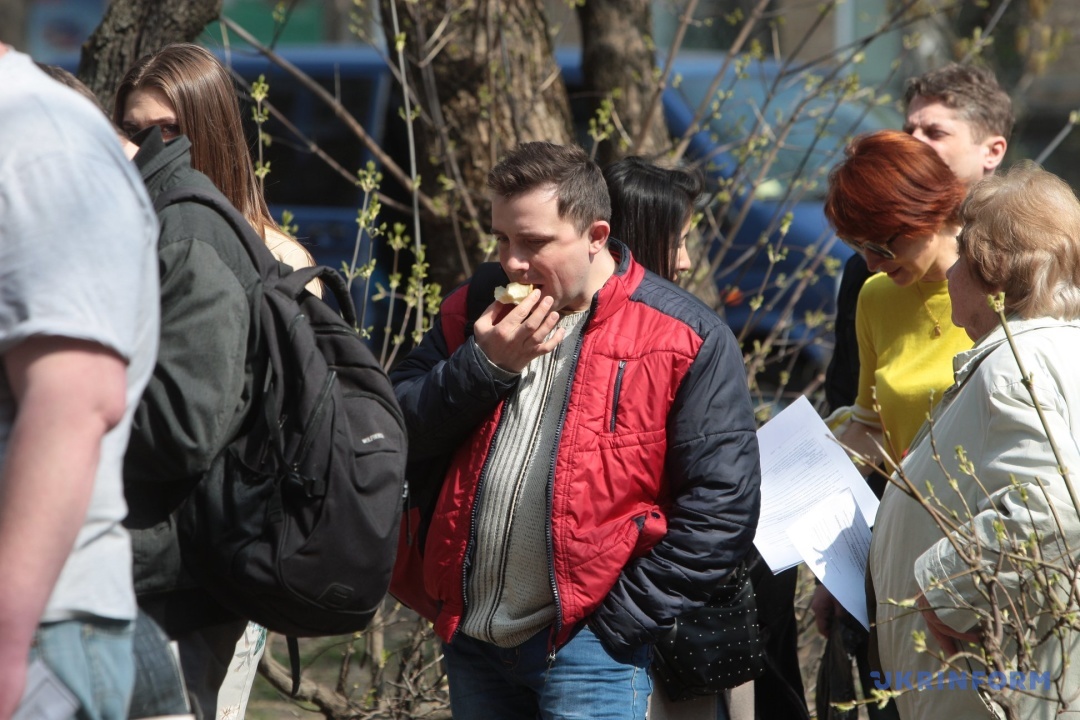 Серед охочих проголосувати 21 квітня — люди різних вікових категорій. Деякі приходять сім'ями з дітьми.