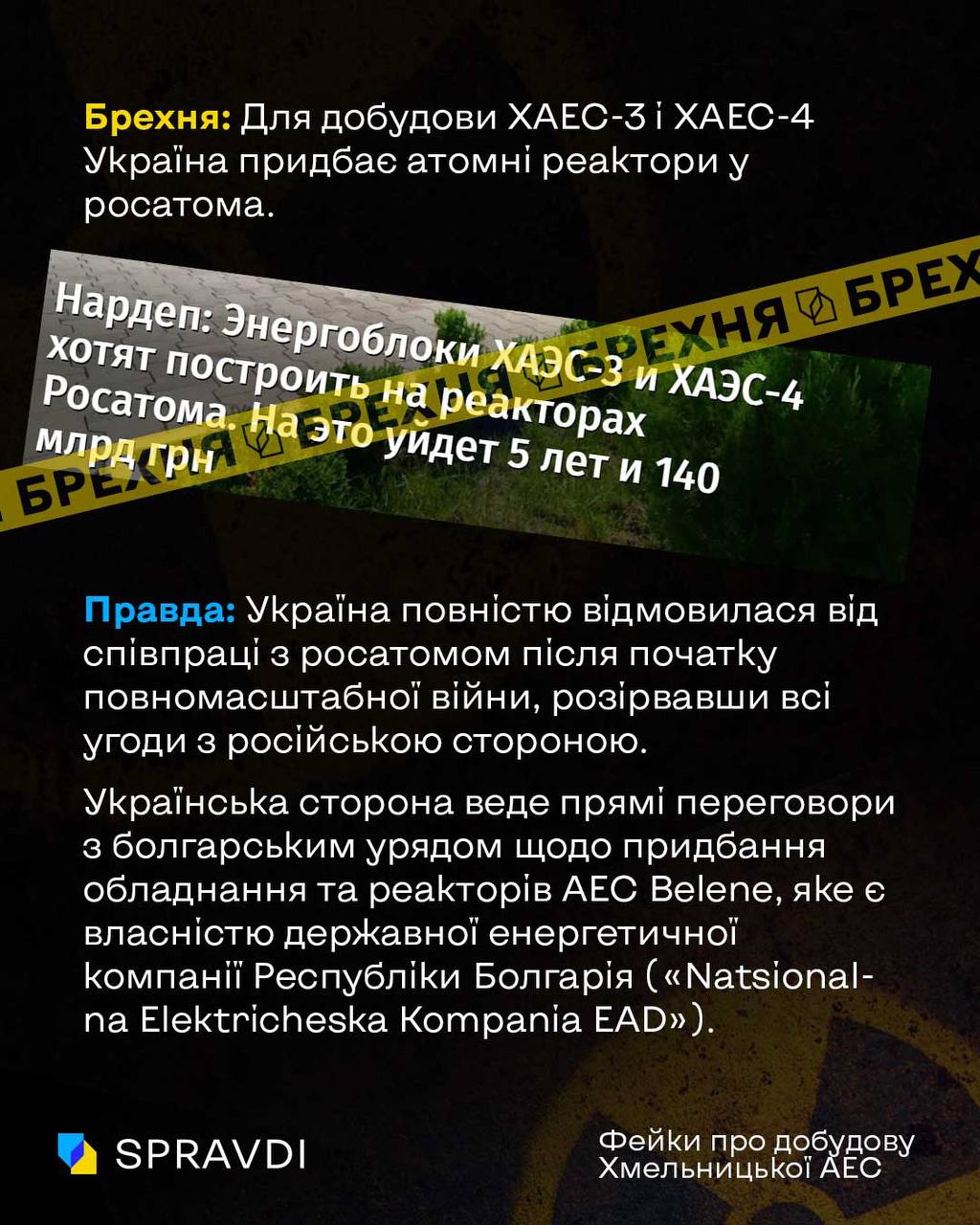 Брехня: «Для добудови ХАЕС-3 і ХАЕС-4 Україна придбає атомні реактори у «Росатома».