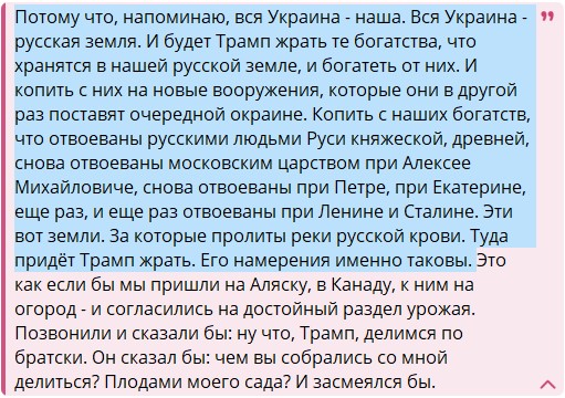 Z-блогер Альохін сумнівається, «що Трамп не грає, заплутуючи і маніпулюючи заради справжньої стратегічної перемоги над Росією. Чому б і ні? Адже війна — це шлях обману».