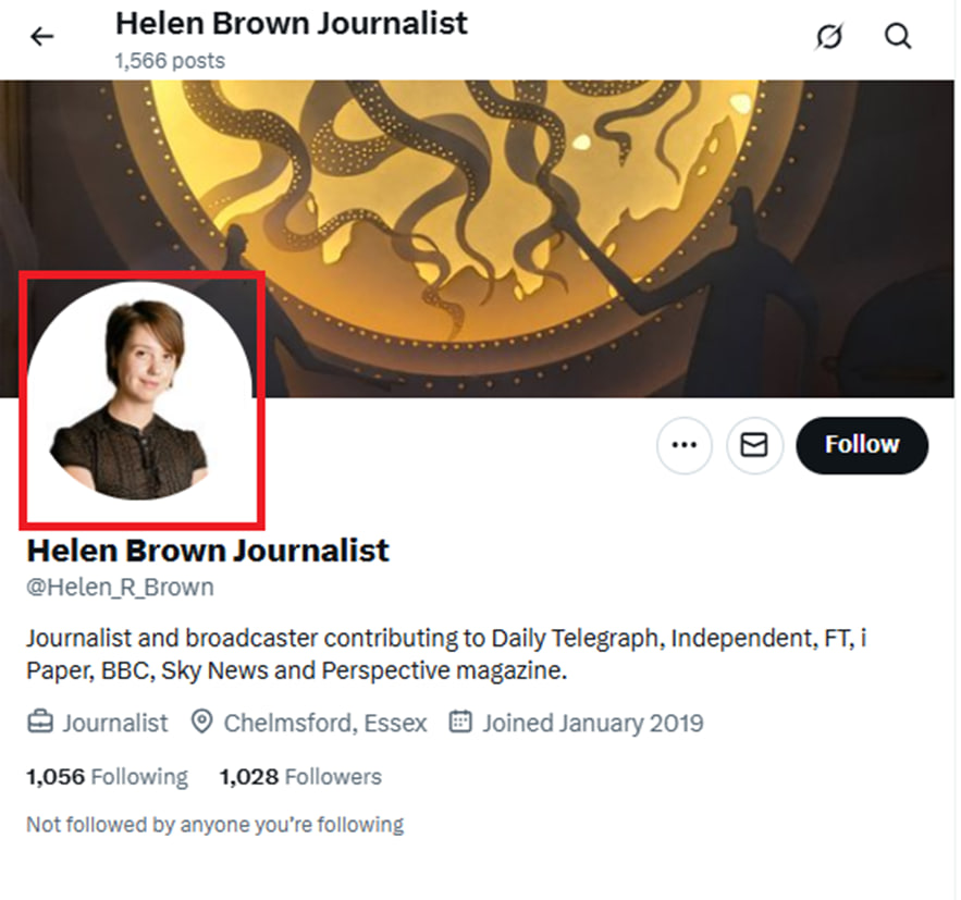 Авторкою матеріалу вказується нібито журналістка на ім'я Шарлотт Дейвіс. Однак її фото насправді належить іншій медійниці - Гелен Браун, яка не має відношення до псевдорозслідування.