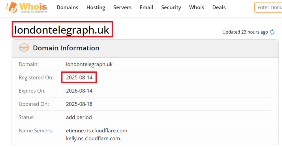 Це фейк. ЗМІ під назвою London Telegraph, на яке посилаються пропагандисти РФ, не існує. За даними WHOIS, цей ресурс було створено лише 14 серпня 2025 року.