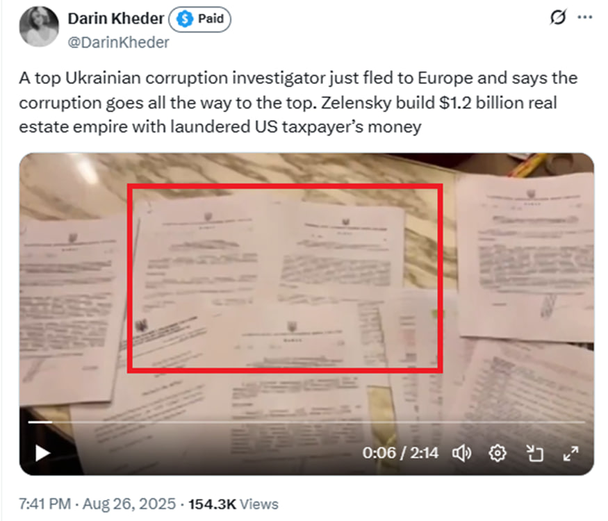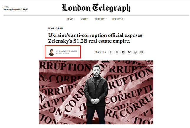 Проросійські пропагандисти у Телеграмі, соцмережах Х та Інстаграмі поширюють «відеорозслідування» нібито британського видання London Telegraph. У матеріалі йдеться, що буцімто колишня слідча Національного антикорупційного бюро України (НАБУ) Ірина К. втекла з України з великою кількістю документів, які «доводять», що сім'я Президента Володимира Зеленського володіє нерухомістю у Європі на 1,2 мільярда євро. Також стверджується, що цими активами українських лідер начебто володіє через близьке коло довірених осіб.