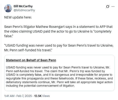 Фейк спростував і адвокат актора Шона Пенна, який заявив, що його клієнт ніколи не отримував гроші з USAID для поїздок в Україну.