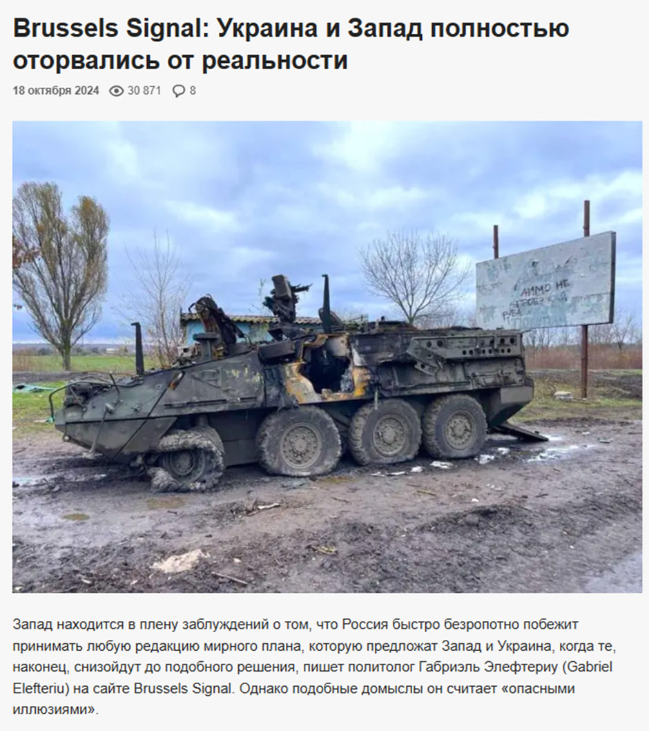 Російські телеграм-канали поширюють публікацію видання Brussels Signal із заголовком «ЄС ігнорує переслідування угорців та поляків, які не є українцями». У статті стверджується, що нібито 150 тисяч етнічних угорців, що проживають на Закарпатті та 140 тисяч етнічних поляків у Волинській області, «страждають» від утисків з боку української влади. Як «доказ», наводяться аргументи історичного характеру та відсутність в Україні виключно угорсько- та польськомовних шкіл. У публікації також йдеться про нібито переслідування етнічних росіян в Україні. Причиною цього буцімто є «нацизм» та націоналізм української влади. Через таке ставлення до нацменшин в Україні начебто не місце у ЄС, резюмує автор статті.