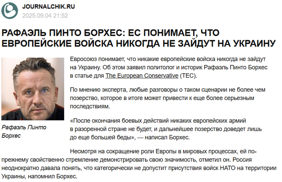 Стаття Борхеса була опублікована у виданні Brussels Signal, де іноді з'являються відверто антиукраїнські тексти та вихваляння РФ. Зокрема на сайті медіа є схвальна стаття про російського генерала та командира «Ахмата» Апті Алаудінова.