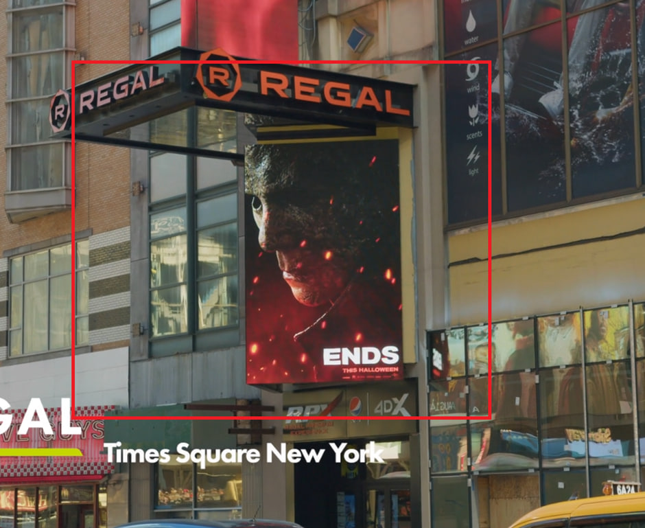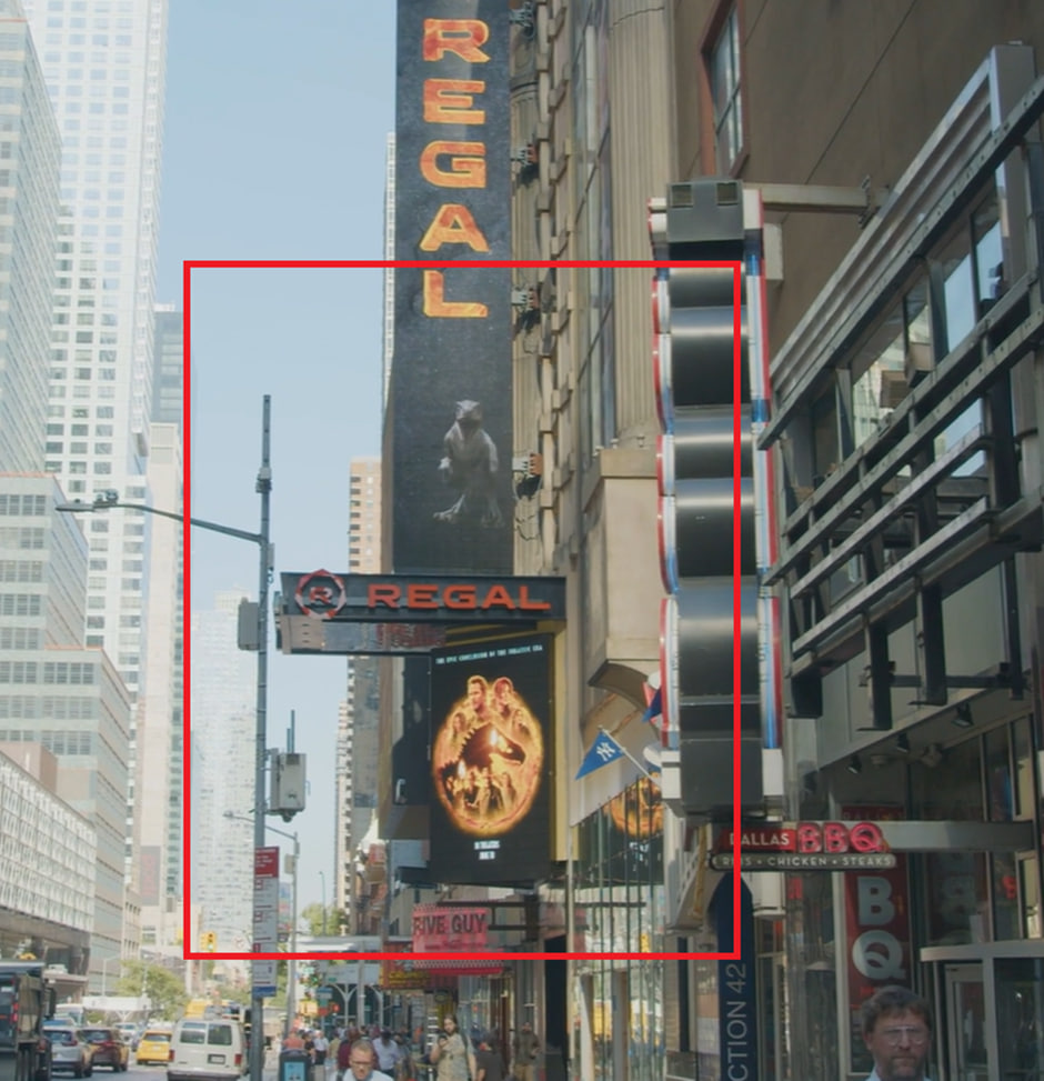 По-третє, стверджується, що псевдоролик транслюється на білборді, розміщеному на будівлі відомої у США мережі кінотеатрів Regal. Проте насправді на даному екрані показують виключно трейлери нових фільмів та афіші стрічок, які демонструють у даному кінотеатрі.
