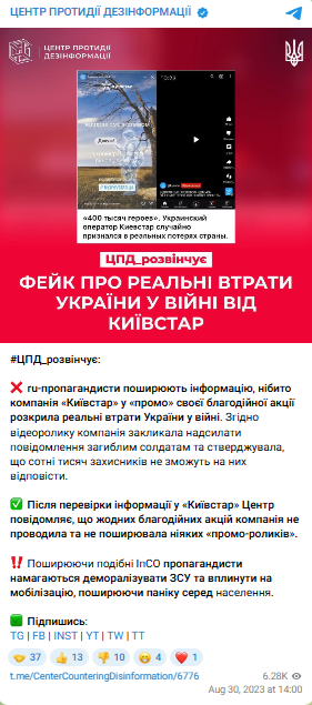 Щодо втрат серед українських військових, псевдоблогер не наводить жодного офіційного джерела. Натомість він посилається на нібито благодійну акцію від «Київстар», яка, за його твердженням, «підтверджує» заявлені цифри. Однак такої акції ніколи не існувало. Аналогічний фейк російські ресурси поширювали ще у 2023 році. Тоді згадувалась цифра «загиблих» воїнів у 400 тисяч осіб.