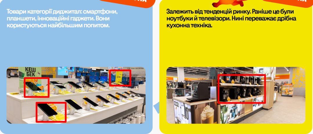 Фото зі смартфоном, яке опублікували росіяни, також є фейковим. По-перше, актуальна адреса сайту «Фокстроту» - www.foxtrot.com.ua, а у пропагандистів вказано www.foxtrot.ua. По-друге, на підробленому знімку формат цінників не відповідає тому, який використовує магазин. На актуальних фото та відео можна побачити, зокрема, жовті ярлики з цінами та рекламний слоган «Хоч».