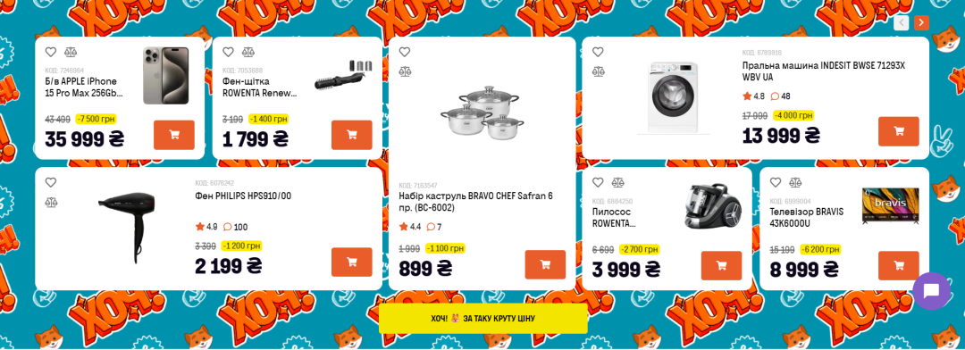 Зазначимо, що на сайті «Фокстроту» та фізичних магазинах всі ціни на товари вказані у гривнях і немає жодних оголошень про перехід на розрахунок в «у.о».