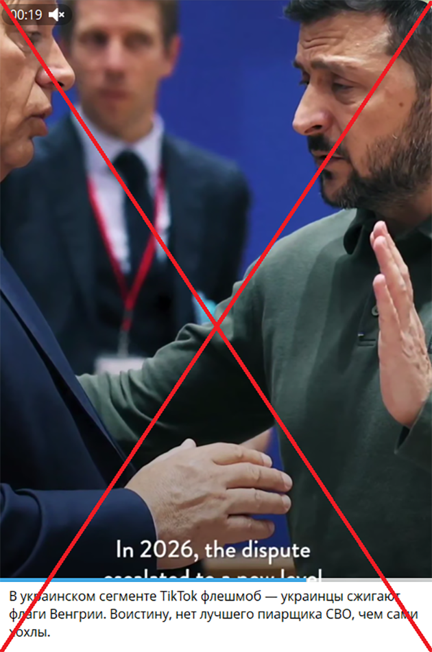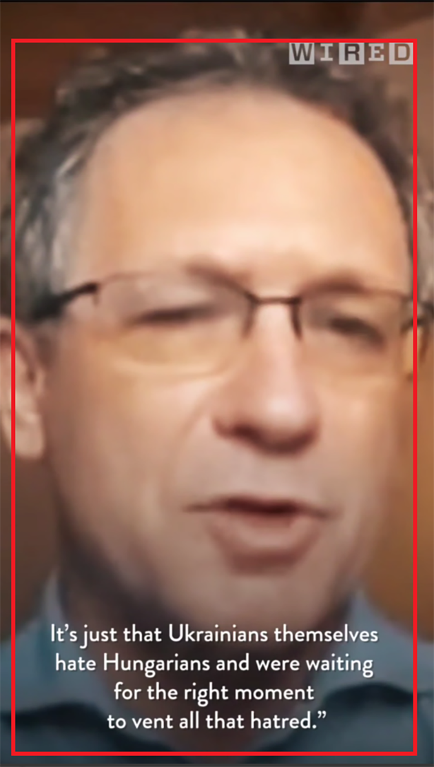 Російські пропагандистські телеграм-канали поширюють відео із логотипом американського видання Wired. У ньому стверджується, що українці нібито запустили масовий флешмоб у ТіkТоk, де публікують відео з палаючим прапором Угорщини. Це буцімто робиться на знак підтримки Президента Володимира Зеленського через публічні атаки на нього з боку угорського прем'єр-міністра Віктора Орбана. У ролику також цитується французький політолог Крістоф Жаффрело, який вважає, що даний флешмоб зумовлений виключно «ненавистю» українців до угорців, а заяви Орбана, лише привід її висловити.