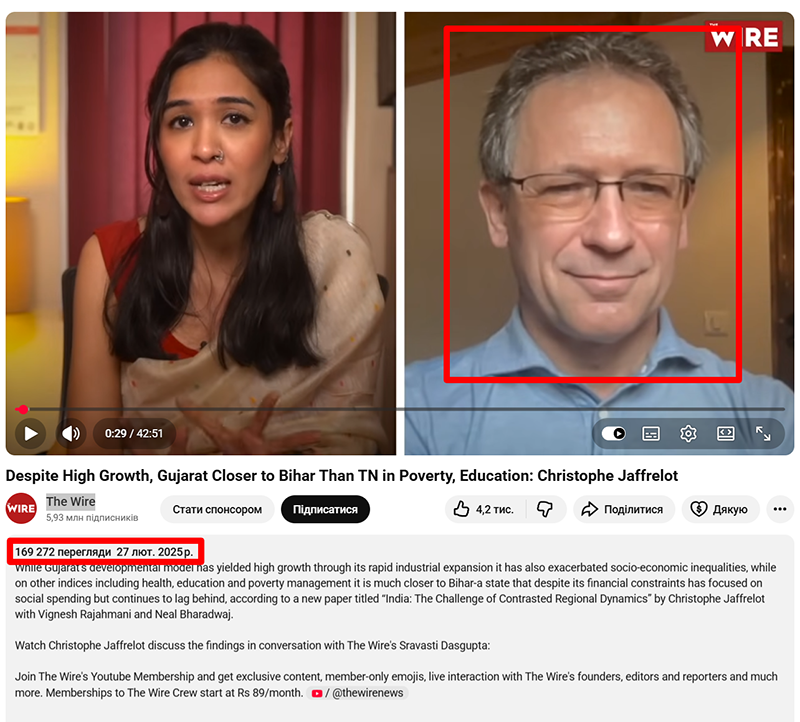 Крістоф Жаффрело також не робив подібних заяв, що стосуються Угорщини чи України. Він є спеціалістом з Індії та працює в Центрі міжнародних досліджень Sciences Po у Парижі. Фрагмент відео, на якому Жаффрело з’являється із фейковою цитатою, взятий з його інтерв'ю від 27 лютого 2025 року для індійського видання The Wire. У ньому йдеться про внутрішню політику Індії, а не про Україну чи Угорщину. Пропагандисти додали до відеоряду з даного інтерв’ю вигадану цитату.