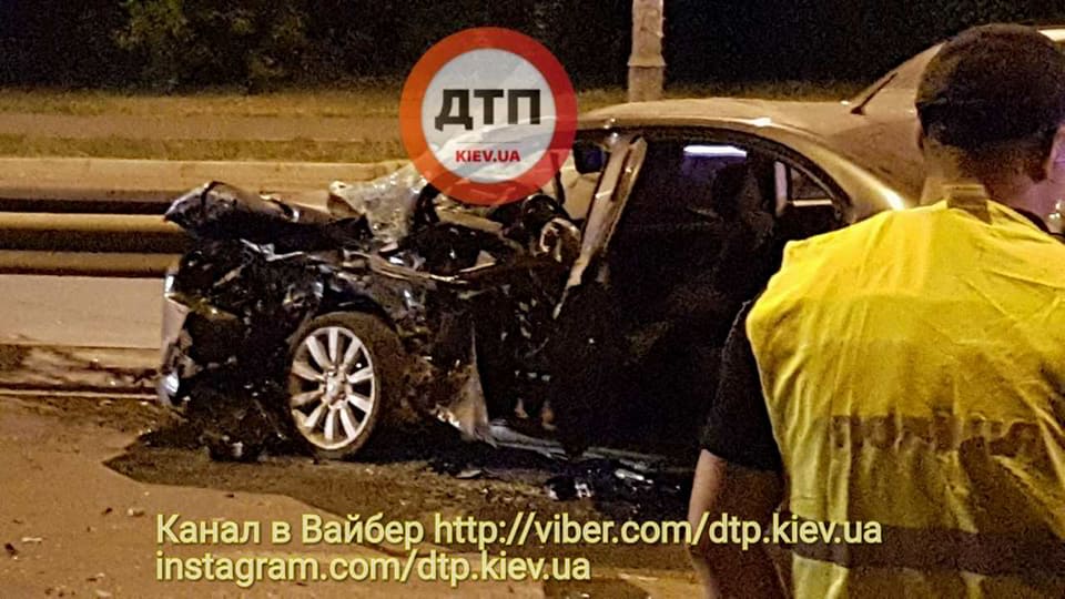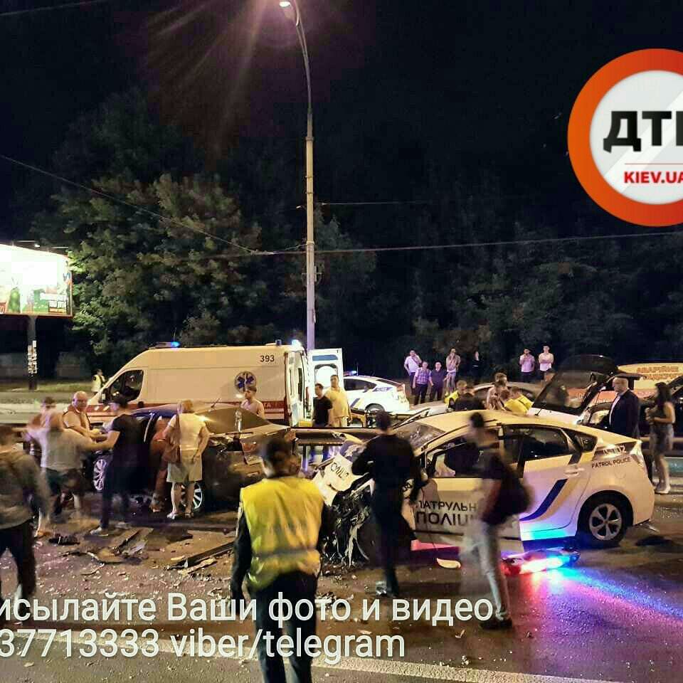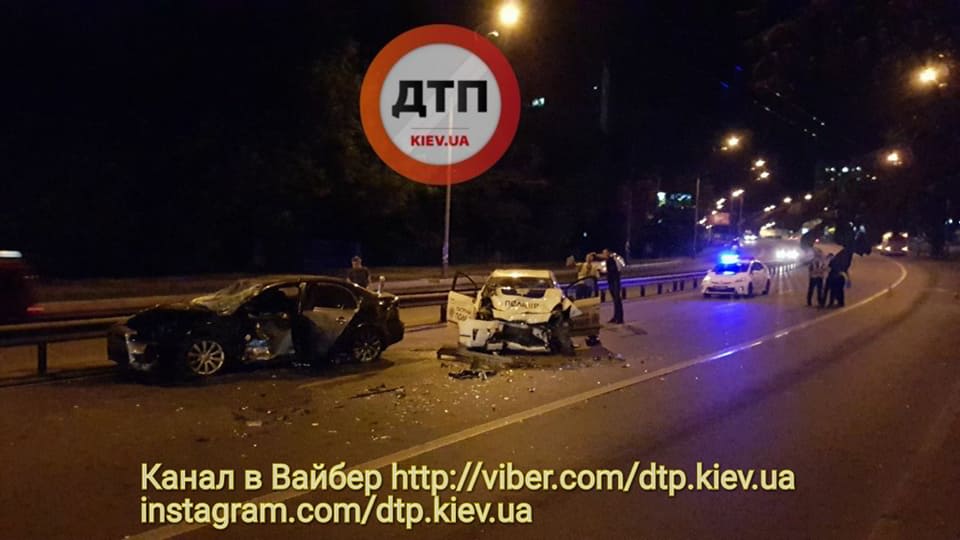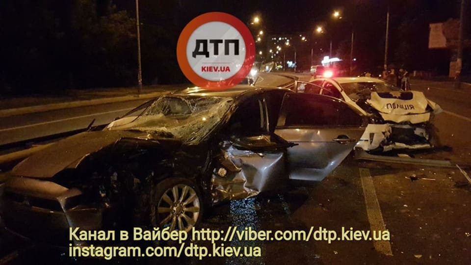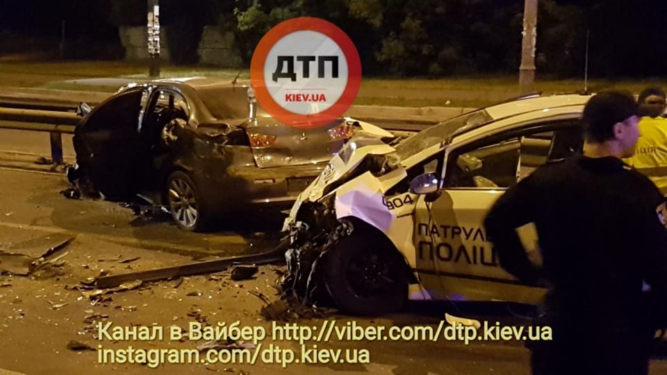 Нічна погоня у Києві: BMW спровокував аварію, поліцейське авто розбито вщент