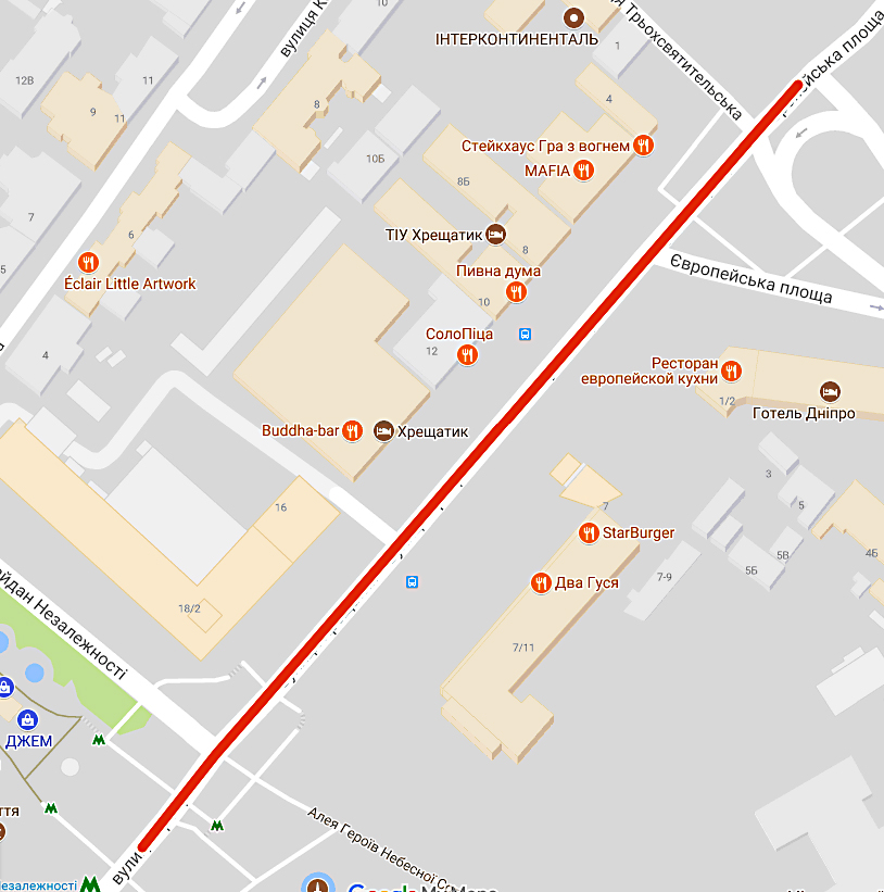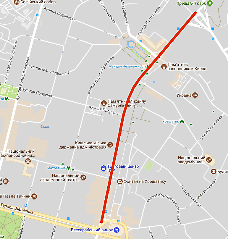 16 та 18 серпня з 21:00 до 02:00 на час тренування військ із проходженням у пішому порядку буде перекрито вул. Хрещатик (від Бессарабської до Європейської площі)