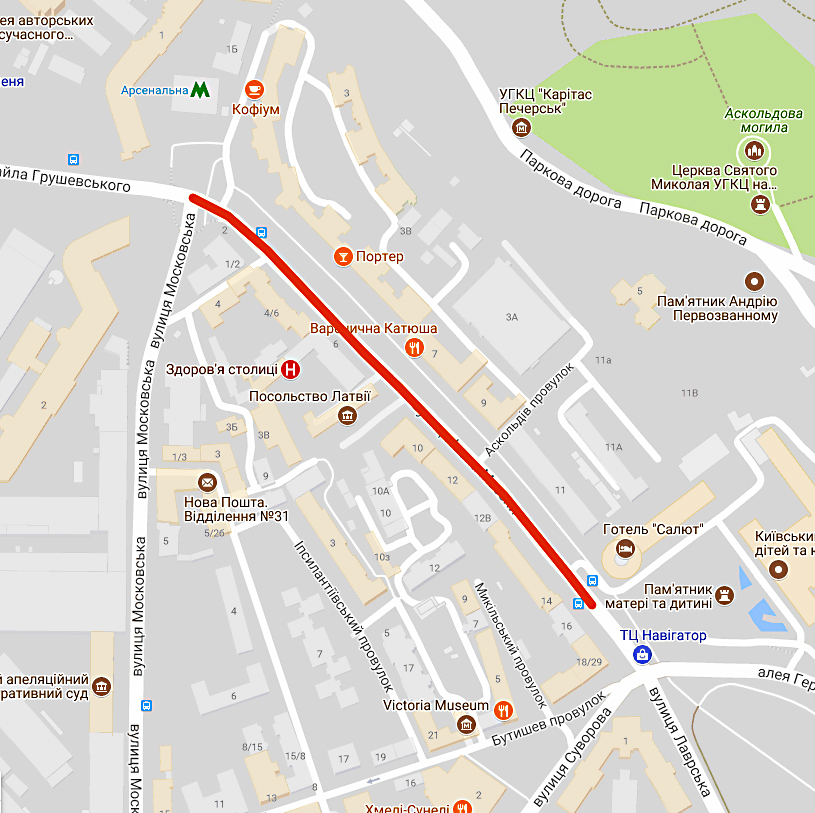 22 серпня з 07:00 до 12:00 буде перекрито вул. Михайла Грушевського (на ділянці від вул. Шовковичної до Європейської площі), Парковій алеї, Володимирському узвозі (на ділянці від Поштової площі до Європейської площі), вул. Трьохсвятительській (на ділянці від вул. Костьольної до Європейської площі), вул. Михайлівській (на ділянці від вул. Костьольної до Європейської площі) - для проведення відкриття демонстраційного показу озброєння та військової техніки Збройних Сил України, Державної прикордонної служби України та Національної гвардії України.