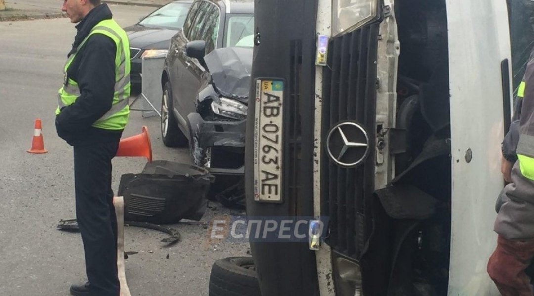 У Києві маршрутка протаранила автомобіль і перекинулася