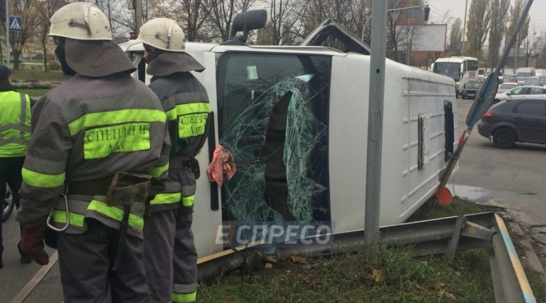 Як розповіли поліцейські, мікроавтобус Mercedes перевозив пасажирів на в'їзді до Києва. Порушуючи правила дорожнього руху, він повернув на вулицю Героїв Дніпра і при цьому не пропустив позашляховик Volvo.