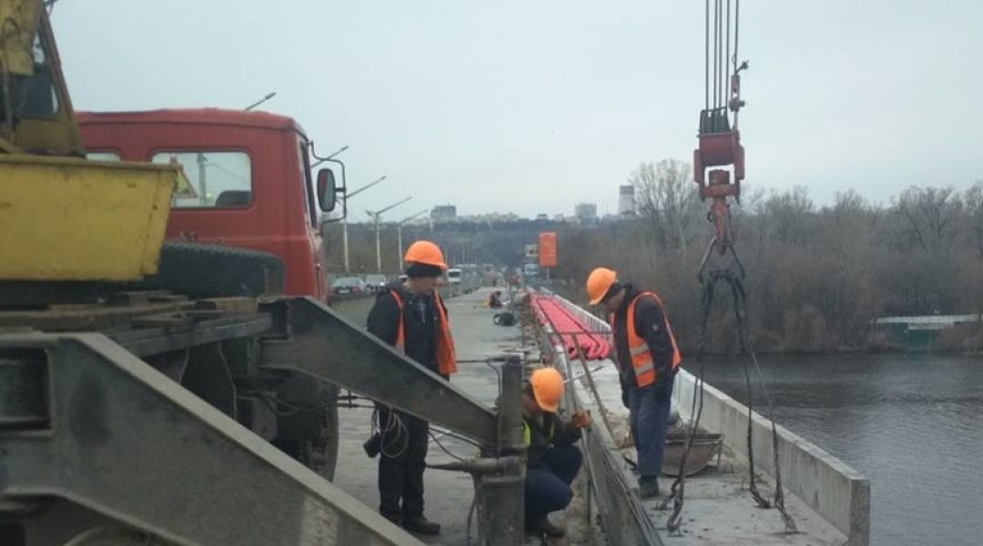 "Дорожники продовжують роботи з улаштування металевих конструкцій, розташованих у тілі мосту Метро через Русанівську протоку, та монтаж нових тротуарів споруди", - йдеться у повідомленні.